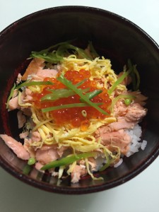 シャケイクラ丼のシャケはわざわざ焼いたのをほぐしてくれます。